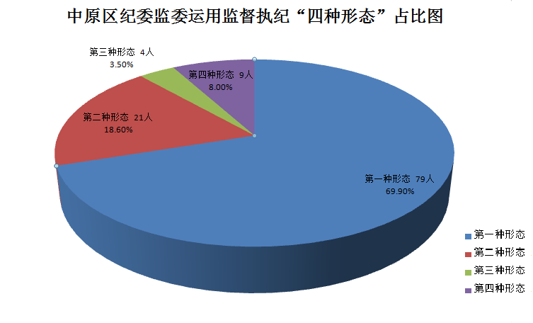 中原区纪委监委始终坚持“惩前毖后、治病救人”的工作方针,把纪律和规矩挺在前面,深入践行监督执纪“四种形态”,当好政治生态护林员。 1-9月份,中原区运用“四种形态”共处理113人,其中运用第一种形态79人,占比69.9%,第二种形态党纪政务轻处分21人,占比18.6%,第三种形态党纪政务重处分4人,占比3.5%,第四种形态严重违纪涉嫌违法立案审查9人,占比8.0%,依法留置9人,解除留置并移送检察机关公诉9人。(中原区纪委监委)