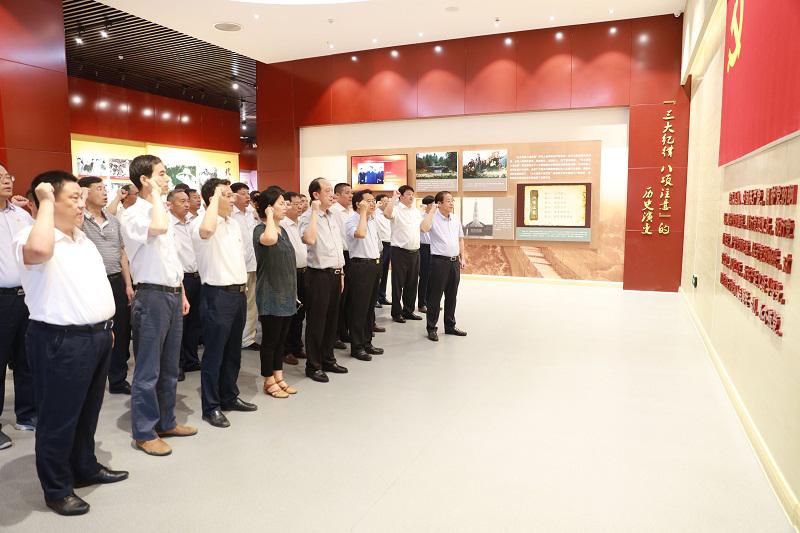 廉政文化教育馆共分为“光辉历程、警钟长鸣、鉴史问廉”三个主题展厅,每到一处,大家都认真观看展品,仔细聆听讲解介绍,详细了解我国廉政制度发展及反腐倡廉建设的光荣历程。在“光辉历程”展厅中国共产党入党誓词展示墙前,面对鲜红的党旗,学员们庄严地举起右手,区委书记王东亮领誓,重温入党誓词。