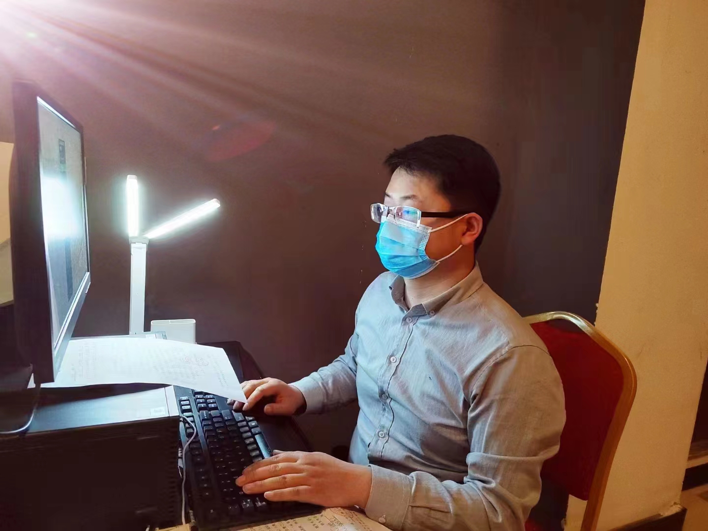 隔离点位是疫情防控一线的“特殊战场”,也是隔离人员临时的“家”。上街区纪委监委信访室青年干部柴浩瑜已经在隔离酒店连续工作20天,面对高强度的工作,他像陀螺一样转个不停,坐在电脑前操控系统,他是管理隔离人员信息的“数据员”;往返于供需统计,他是配备物资的“调运工”;每天晚睡早起筹备好核酸采集工作,他是医务人员的“好助手”;接起电话和24小时“驻岗”在微信群,他又是倾听、疏导隔离人员紧张焦虑情绪的“调解员”和宣传最新防疫政策的“讲解员”。