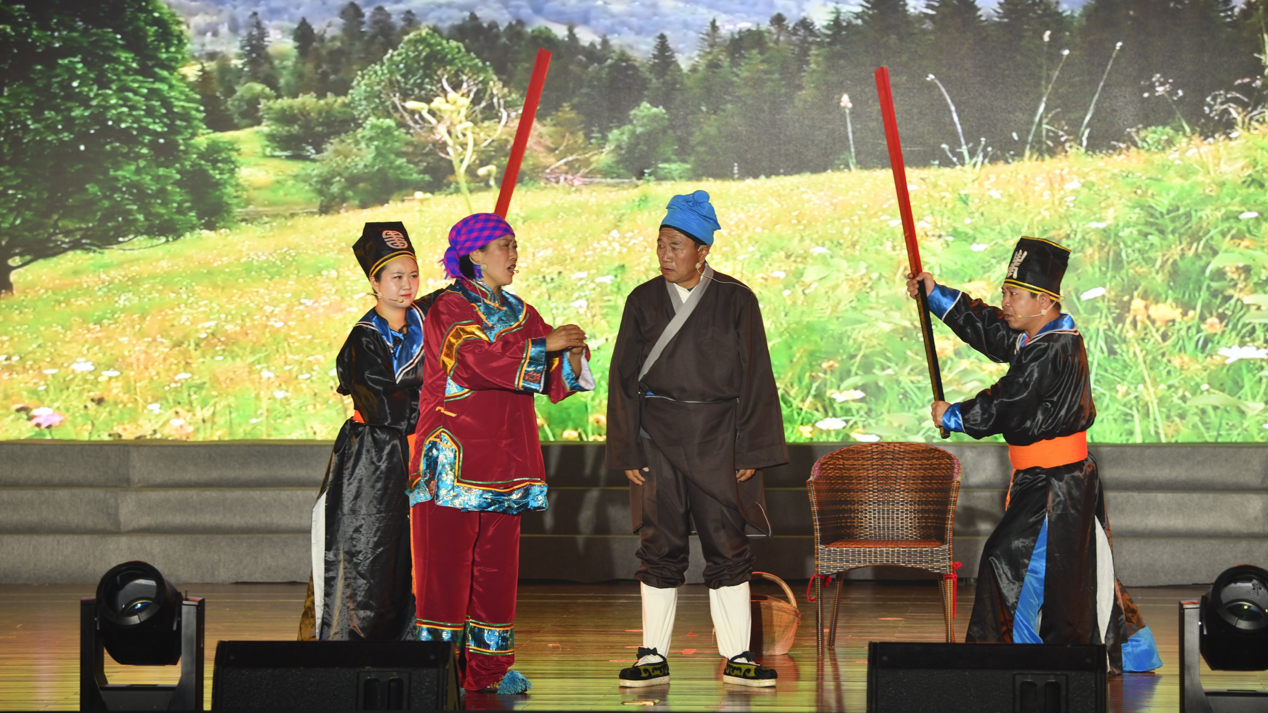 图为中牟县自创戏剧小品《乔县令公断黄瓜案》剧照