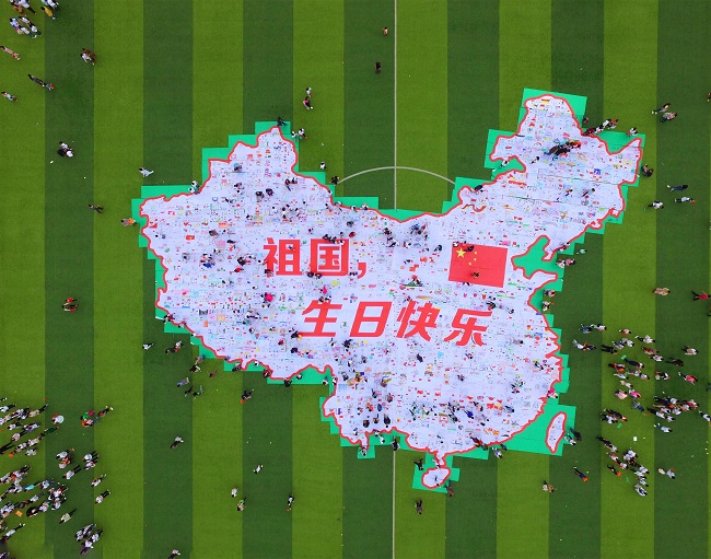 万人同心拼国图 齐为祖国送祝福