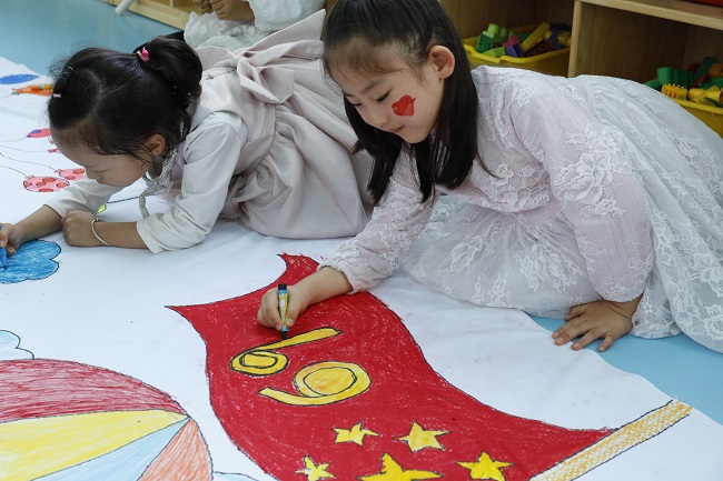 稚手用心绘长卷 童心映照国旗红