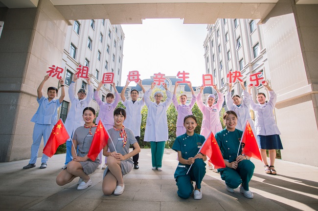 来自不同岗位的医务工作者积极参与丰富多彩的庆祝活动,为祖国送上节日祝福,愿祖国的明天更加繁荣昌盛!