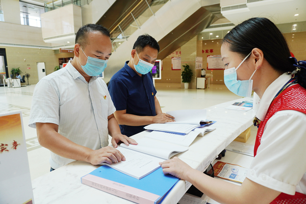 郑州市纪委监委驻市政务办纪检监察组深入市政务服务办事大厅,检查防汛救灾期间涉企事项投诉及办理情况,督促相关单位落实主体责任,为建设项目审批、商事登记等涉企事项开辟绿色通道,助力企业复工复产。(郑州市纪委监委驻市政务办纪检监察组 毋洋 摄)