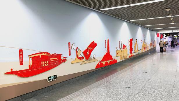 图为“追寻领袖足迹”插画墙,图文并茂弘扬红色文化,传承革命精神。