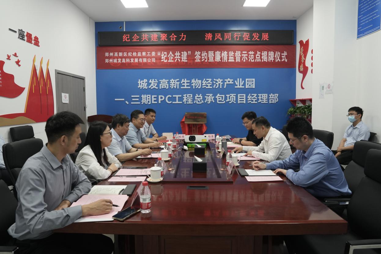 为深入贯彻落实全面从严治党要求,加强新时代廉洁文化建设,推动纪企协同构建亲清政商关系,4月23日,高新区纪检监察工委联合郑州城发高科发展有限公司,在城发高新生物经济产业园项目部举行“纪企共建”暨“廉情监督示范点”揭牌仪式,以监督护航企业高质量发展。