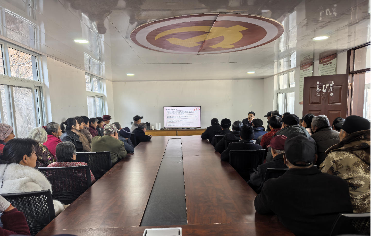活动特邀登封市人民检察院、登封市公安局工作人员进行专题宣讲。面向村“两委”干部与在场村民,宣讲人系统解读了习近平法治思想、党的二十届四中全会精神以及宪法的根本地位与基本原则。同时,结合农村实际,聚焦土地承包流转、相邻权纠纷化解、电信网络诈骗防范等村民关切的法律热点,通过以案释法、展板讲解、互动答疑等形式,将专业法律语言转化为生动易懂的乡村话语,引导群众逐步树立“办事依法、遇事找法、解决问题用法、化解矛盾靠法”的法治观念。