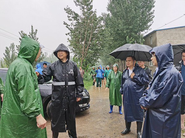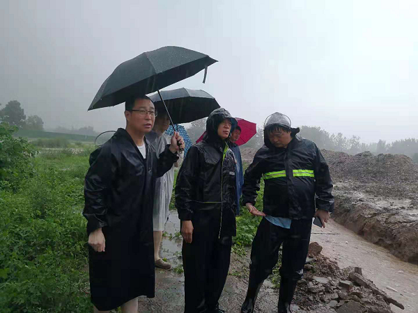 市纪委监委第二监督检查室在管城区王垌村察看防汛排水情况,督导疏排积水、加固大堤。