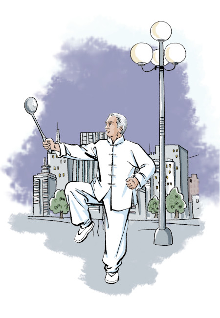 巷子尽头是一个小院,油漆驳落的门经常关着,早晨吱呀一声,花艳竹翠,一头白雪如山倾颓,这是老方要出去晨练了。老方满头白发,年龄却并不大,只有五十多岁的样子。一身白色中式长衫,一柄剑,乍一看,仙风道骨。三年前,曾经公职的老方被开,孑然一身回乡定居,惹得乡邻围观,嘘长问短,看似关心实则试探,老方不作声,只笑。大家顿觉无趣,一一散开。时间长了,也就彼此相安。