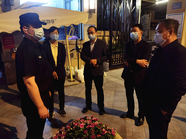 市纪委常委王耀世带队督导如意湖办事处馨悦苑社区银河丹堤小区管控措施落实情况。