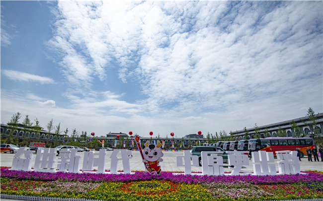 本届全国少数民族传统体育运动会的主题——“奋进新时代,中原更出彩”(刘客白 摄)