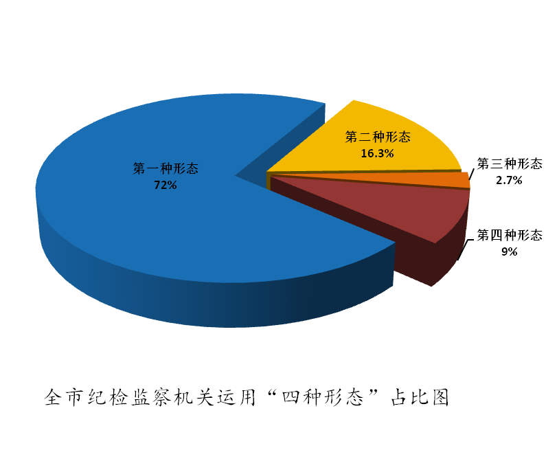 2021年,全市纪检监察机关坚持惩前毖后、治病救人方针,运用“四种形态”批评教育帮助和处理8540人次。其中,运用第一种形态6149人次,占“四种形态”处理总人次的72%;运用第二种形态1390人次,占16.3%;运用第三种形态227人次,占2.7%;运用第四种形态774人次,占9%。