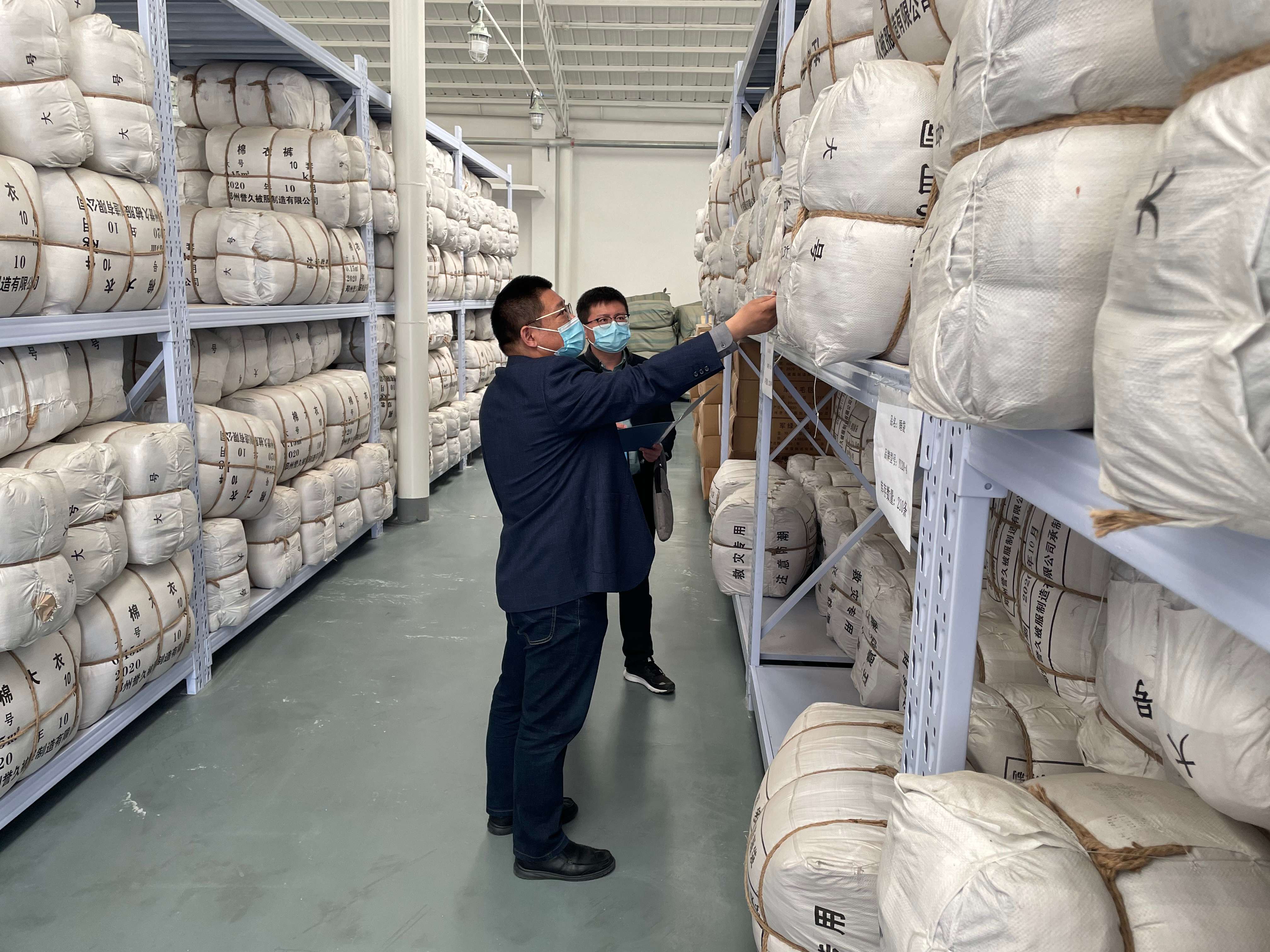 管城区纪委监委督查组在南曹街道办事处小李庄防汛物资储备库实地督查。