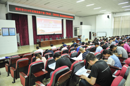 考试前,全市的纪检监察干部还进行了齐唱国歌和宪法宣誓。