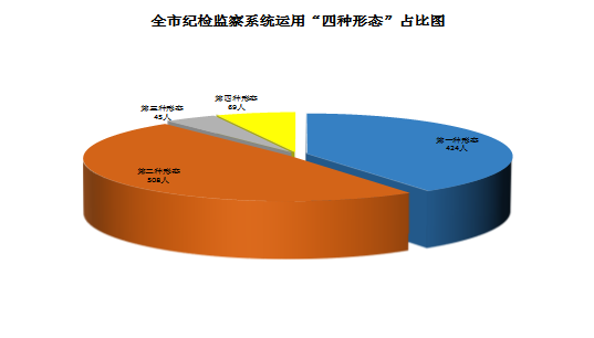 2025年,全市纪检监察系统运用“四种形态”批评教育和处理1046人次。其中,运用第一种形态批评教育和处理424人次,占总人次的40.5%;运用第二种形态处理508人次,占48.6%;运用第三种形态处理45人次,占4.3%;运用第四种形态处理69人次,占6.6%。