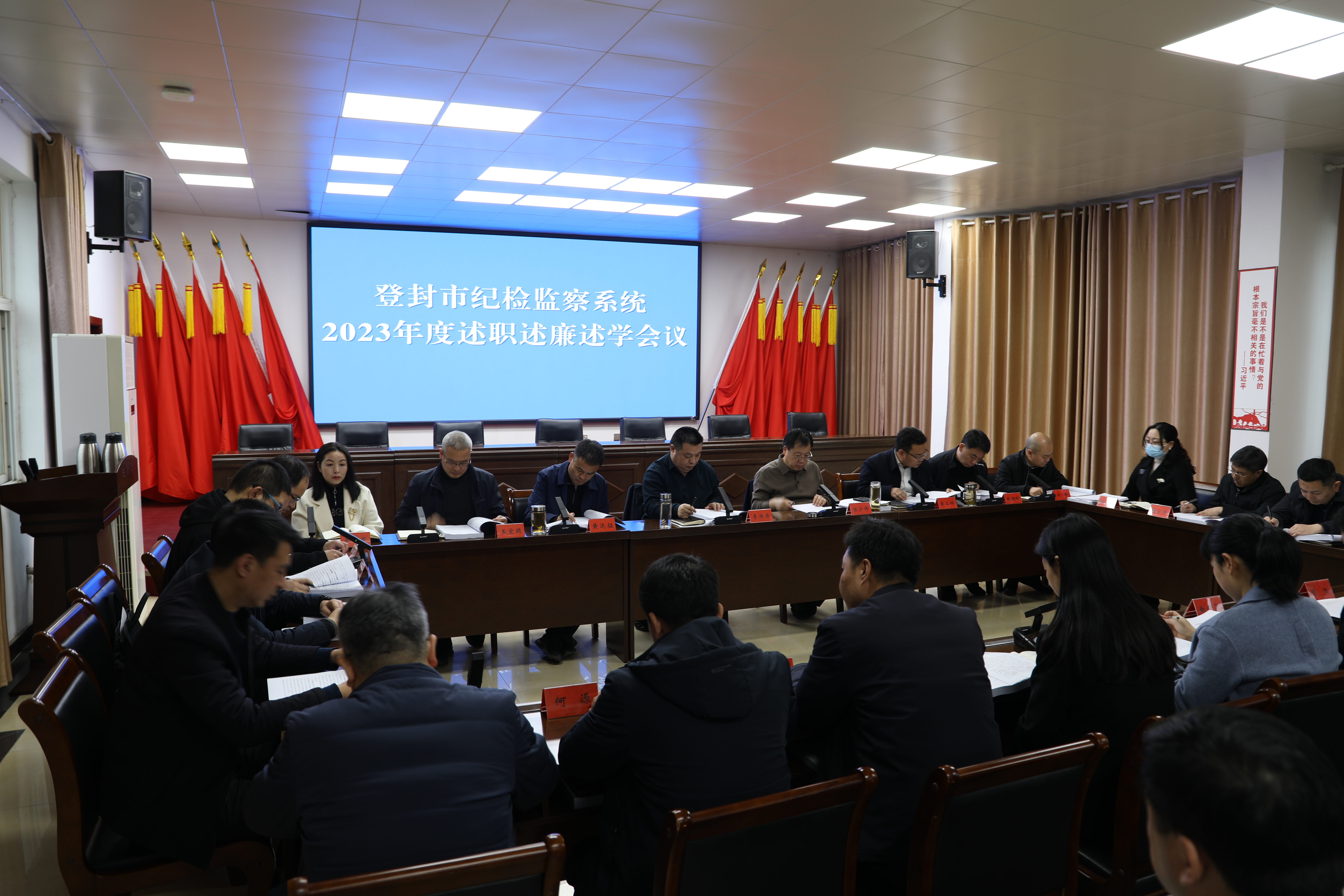 2月29日,登封市纪委监委召开2023年度纪检监察系统述职述廉述学会议。部分负责人就2023年度学习、履职以及廉洁自律情况在会上进行汇报。市委常委、市纪委书记、市监委代主任李洪涛出席会议并讲话。登封市纪委监委机关和各派驻纪检监察组,市委巡察机构,各乡镇(街道)纪(工)委、市属国有企业纪委等99名纪检监察干部参加会议。