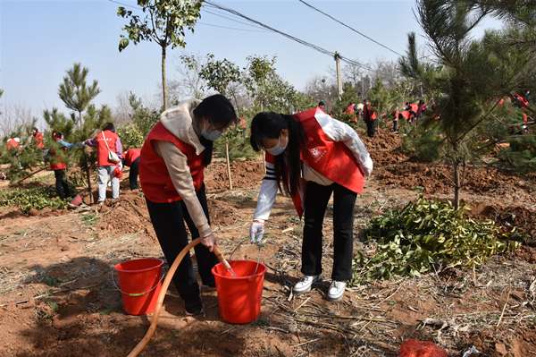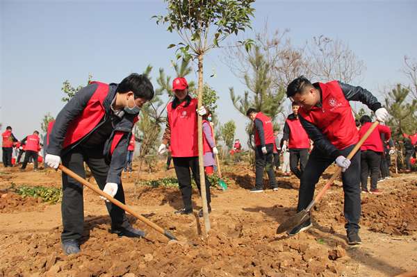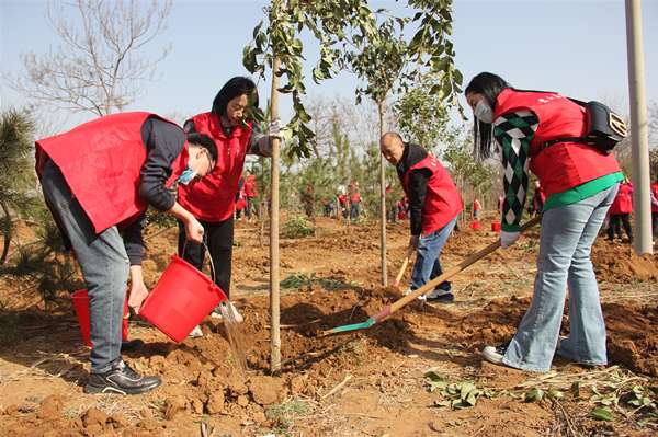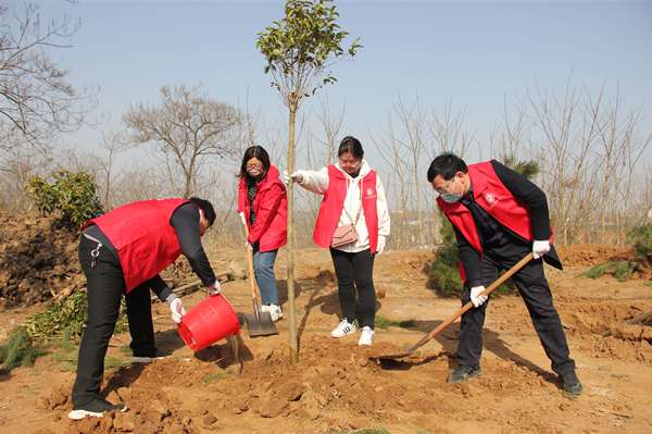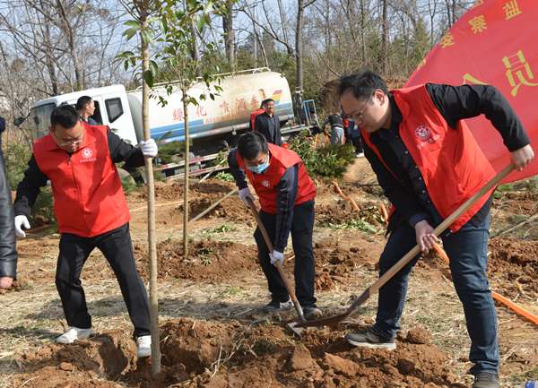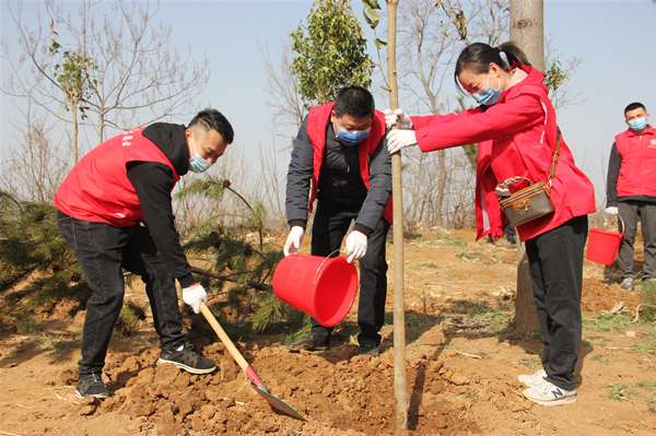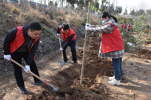 在植树点,大家一起挥锹铲土、堆起围堰、提桶浇水,接连种下雪松、大叶女贞等树苗,经过辛勤劳动,共栽种雪松、大叶女贞等共计420余棵。(组织部 吴帅锋)