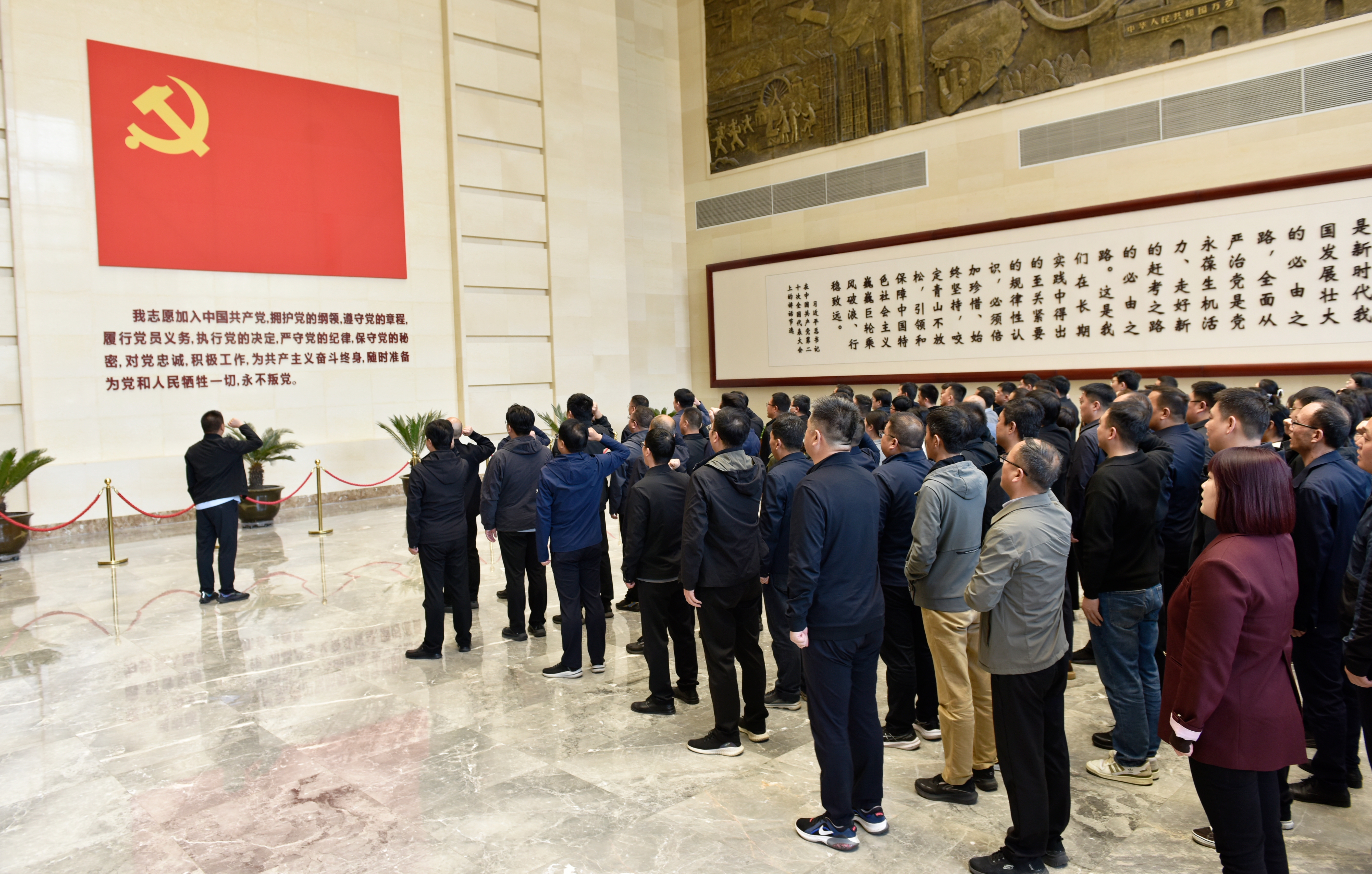 活动现场,全体纪检监察干部在党旗下庄严宣誓,重温入党誓词,用铿锵有力的誓言展现出初心如磐担使命的信心和决心。随后,在讲解员的引导和讲解下,大家依次参观了“鉴史问廉——中国古代廉政文化”“光辉历程——中国共产党党风廉政建设”和“警钟长鸣——新时代河南全面从严治党成果”三个主题展厅以及“中国共产党人的家风图片档案展”。通过图片、文字、影像、雕塑等方式,系统全面地展示了我国传统廉政文化的丰富内涵、我党反腐败斗争的宝贵经验及我省全面从严治党的时代答卷。