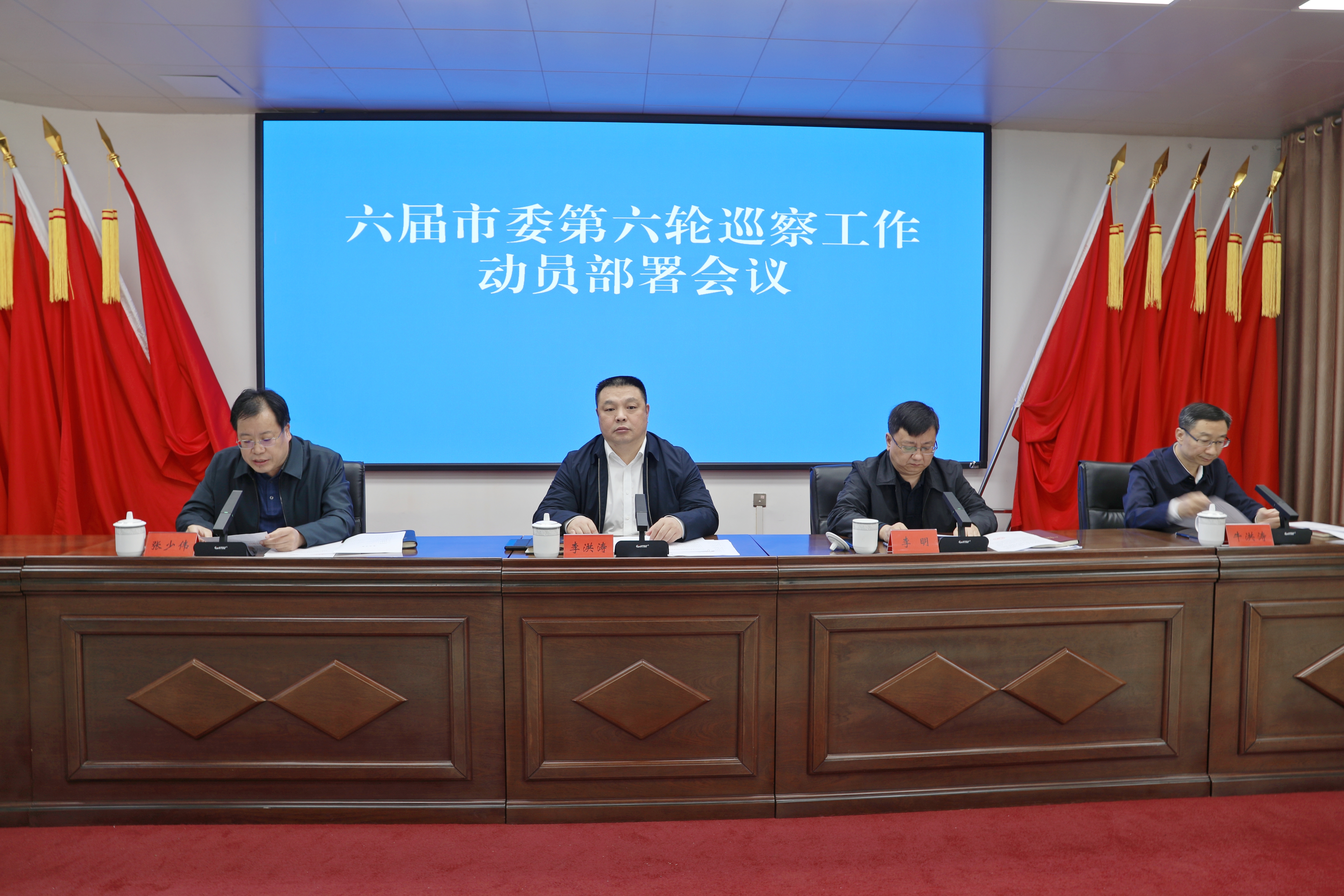 10月24日,六届市委第六轮巡察工作动员部署会召开。市委常委、市纪委书记、市监委代主任、市委巡察工作领导小组组长李洪涛作动员部署并讲话,市委常委、市委组织部部长、市委巡察工作领导小组副组长李明主持会议,市纪委副书记、市监委副主任、市委巡察办主任张少伟宣读巡察通知,市委组织部常务副部长牛洪涛宣布巡察组长、副组长授权任职和巡察组任务分工。
