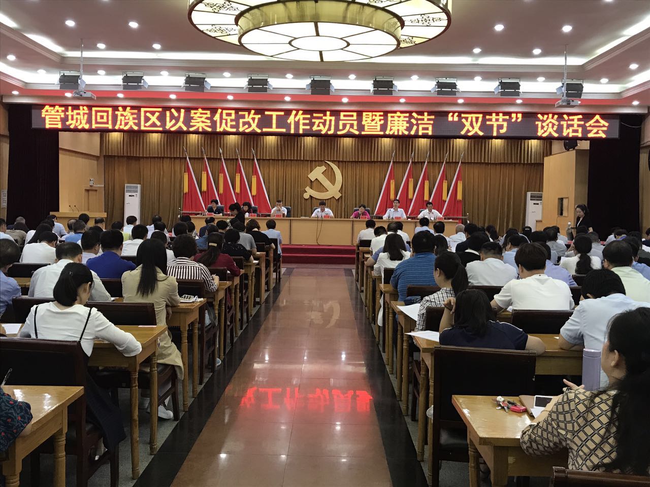 9月12日,管城区召开以案促改工作动员暨廉洁“双节”谈话会。区副县级以上领导干部,各乡、街道党政负责人,纪(工)委书记,区直单位负责人、纪检组长参加了会议。会上就坚持标本兼治促进以案促改工作暨中秋国庆“双节”期间党风廉政建设工作进行了安排部署。