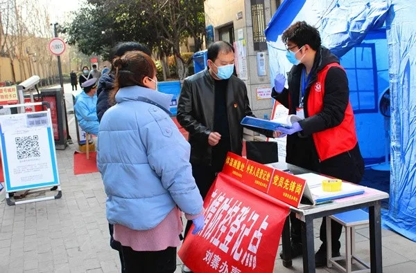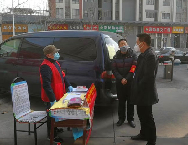 2月23日,区委巡察办主任吕磊在刘寨街道建业壹号城邦小区卡点检查外地返郑人员居家隔离管控情况。