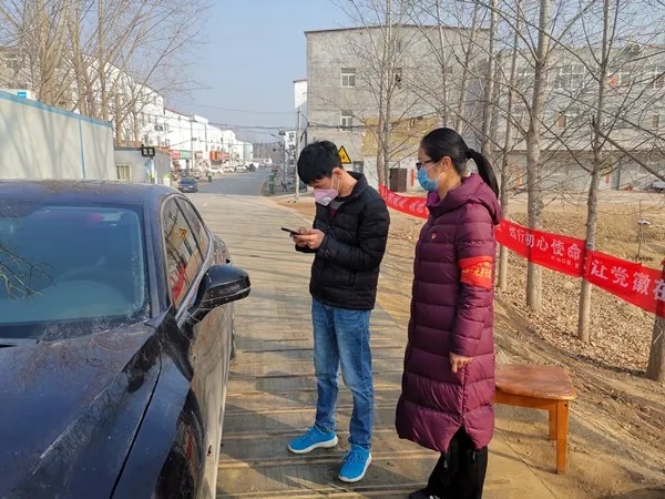 在花园口镇赵兰庄村卡点,区纪委常委连艳萍在在指导居民健康登记管理系统验证。