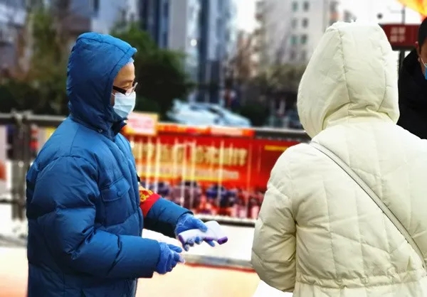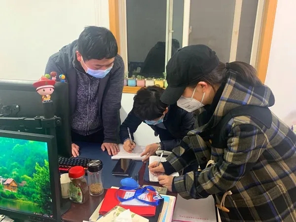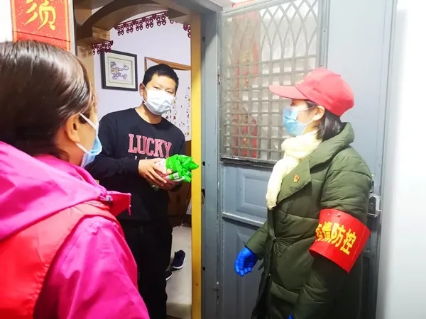 驻区农委纪检监察组科员米柯霖正兴隆社区晨光花园小区,张贴隔离封条。(办公室 王润华、调研法规室 海笑、驻区城管局纪检监察组 田丽娟、驻区卫健委纪检监察组 宋娟)
