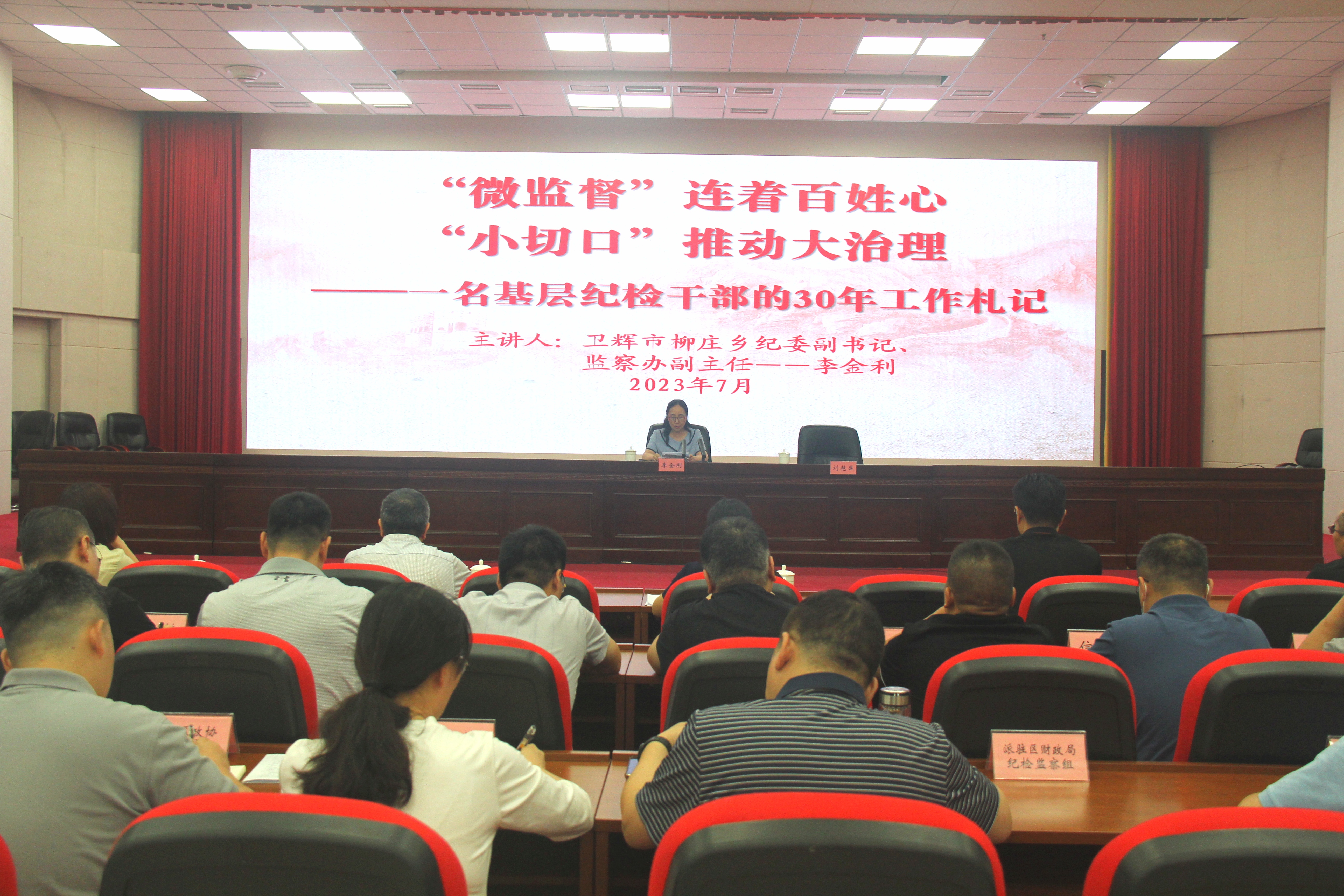 为激励广大干部学习先进、争当先进,引导党员干部积极担当作为、自觉遵规守纪,7月20日,金水区纪委监委邀请全省纪检监察先进工作者,卫辉市柳庄乡纪委副书记、监察办副主任李金利同志作专题报告,区纪委监委班子成员,机关各部门、各派驻纪检监察组、各街道纪工委(监察办公室)、区委巡察机构全体人员,区直各单位纪检人员参会学习。