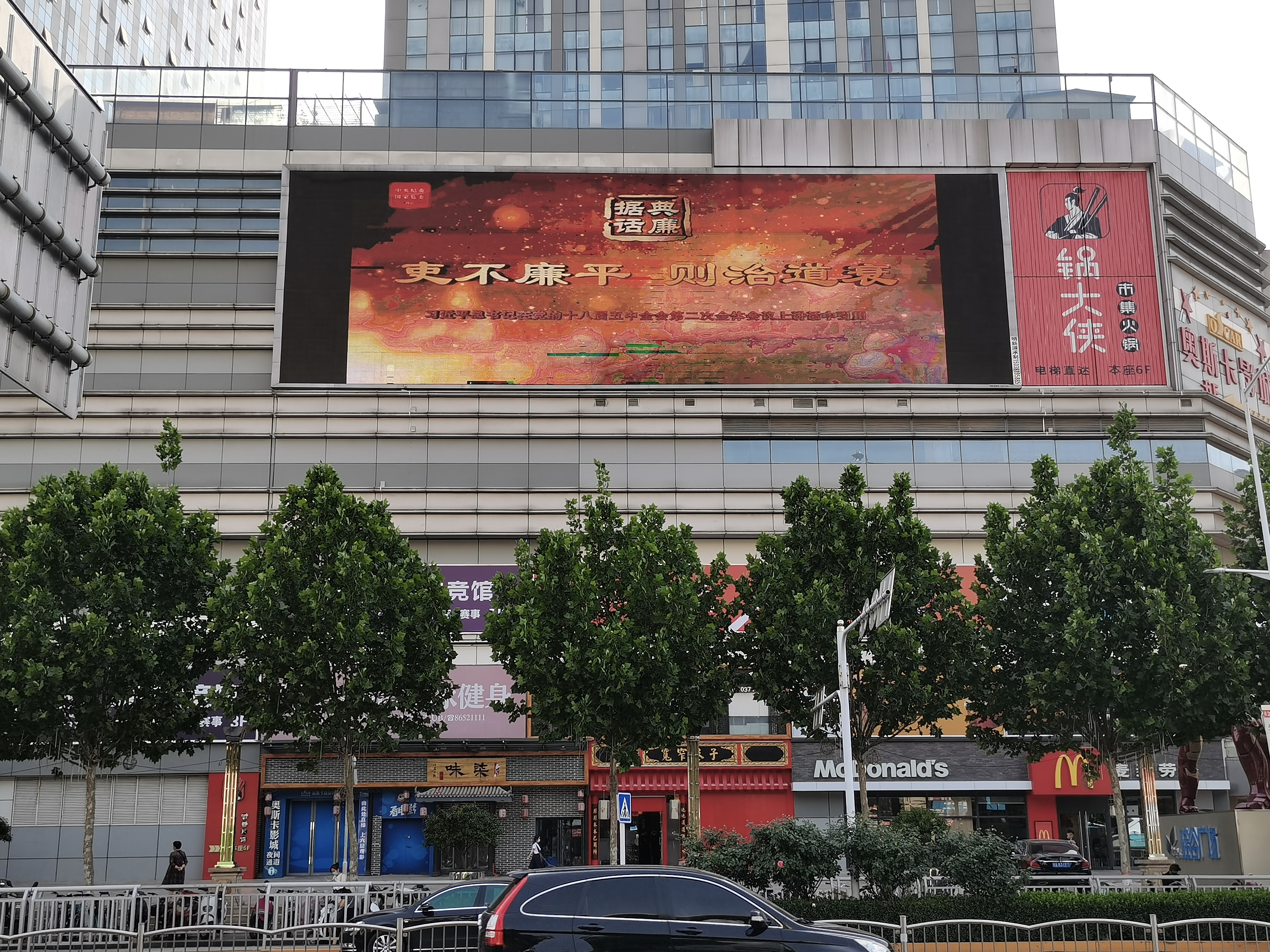郑州市科技园区硅谷广场的露天广告屏正在播放《据典话廉》系列微视频。(金水区工商质监局 陈晓颖供)