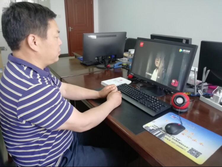 兴达路街道办事处工作人员观看《据典话廉》。(兴达路街道纪工委 尹英琴供)