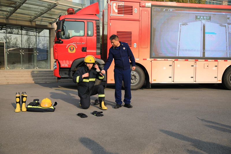 随着演练指令发出,全体参与人员在引导下迅速、有序地按照预定疏散路线撤离至安全区域,整个过程紧张有序,有效检验了应急预案的可行性和干部的应急反应能力。在实操培训中,专业人员现场演示灭火器的正确使用方法和步骤、消防防护服的快速穿戴技巧以及消防面罩使用方法。参训人员踊跃参与,轮流进行灭火器操作和VR火灾逃生体验系统体验,通过亲身实践掌握器材使用要领,克服面对火情的心理压力,提升了实战技能。