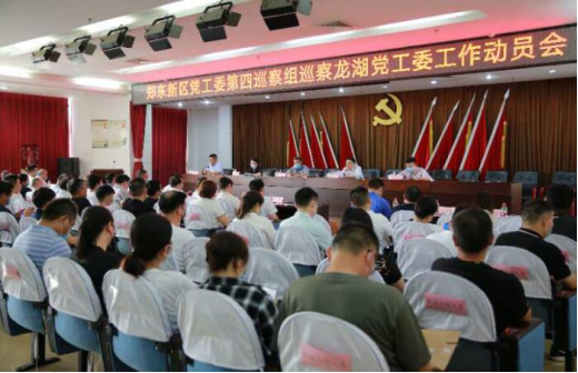 2020年5月25日下午,郑东新区党工委第四巡察组巡察龙湖党工委工作动员会召开。郑东新区党工委巡察办副主任卢常海出席会议并讲话,郑东新区党工委第四巡察组组长张建民在会上通报了本次巡察的目的、任务、计划安排和工作要求,龙湖党工委书记陈萌主持会议并作动员讲话。第四巡察组副组长胡晓利、贾相杰及巡察组成员,巡察办相关人员,龙湖办事处正式在编干部、郑东新区派遣制人员、各村“三委”成员参加会议。