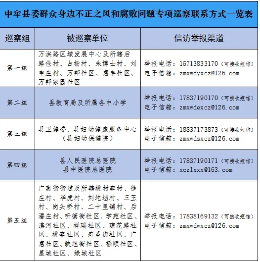 巡察期间,各巡察组均开通有举报电话、电子信箱、邮政信箱、征求意见箱等接受群众来电来信。巡察组接收来电时间为工作日:8:30—12:00、14:30—18:00,受理截止日期为6月30日。巡察结束后,所有举报反映方式全部关闭。对不属于巡察受理范围的事项,按规定转被巡察单位或有关部门办理。同时,巡察期间,还可以通过手机扫描“郑在巡”二维码向巡察组反映问题和线索。(县委巡察办刘文豪、李晓旭)