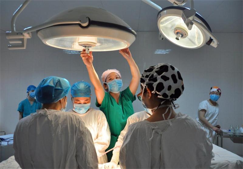 手术室护士正在帮忙调试灯光,她们是无影灯下守护生命的平凡使者,虽没有惊天地泣鬼神的事迹,但愿以终其一生热爱这份事业,用青春爱心谱写生命的感动。