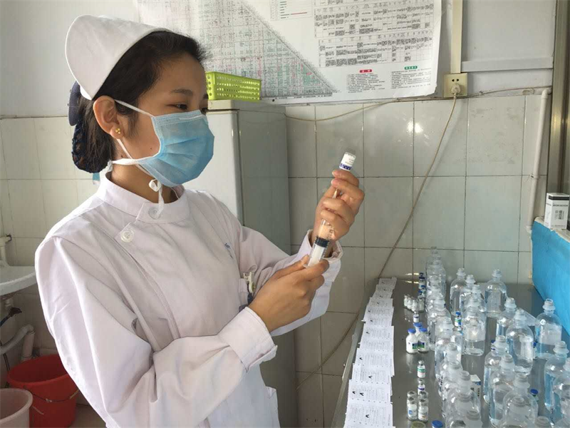晨光中,护士张雪开始一天的工作。每一滴溶液的注入,都有她们精确的计量。 她们用时钟约束出来的严谨,确保了我们每一次的安全。