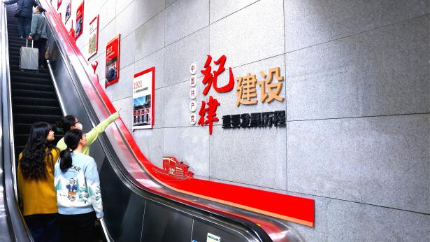 图为“党的纪律建设重要发展历程”插画墙,以文化传承为本、以红色故事为脉、以纪律建设为要,立体展现纪律建设的发展历程。
