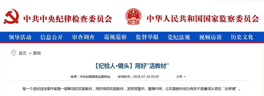 摘要:7月24日,中央纪委网站【纪检人·镜头】《用好“活教材”》采用我市照片。
