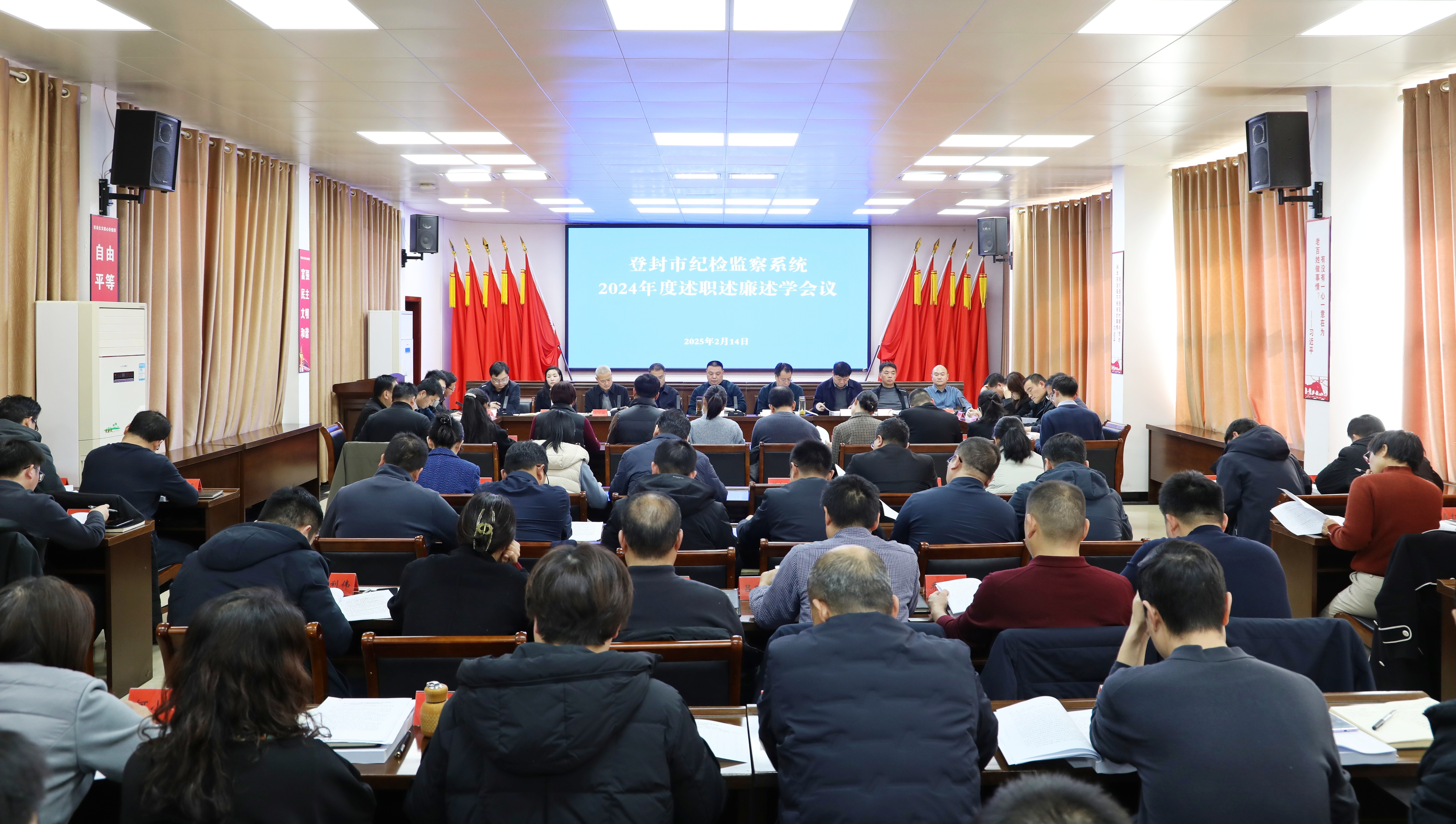 2月14日,市纪委监委召开2024年度纪检监察系统述职述廉述学会议。市委常委、市纪委书记、市监委主任李洪涛出席会议并讲话。市纪委监委班子成员,各乡镇(街道)纪(工)委、市属国有企业纪委、机关各室(部)中心、各派驻纪检监察组、市委巡察机构负责同志参加会议。