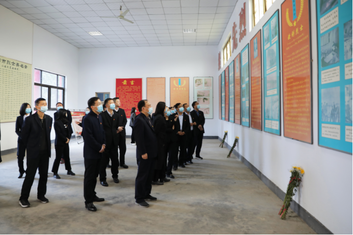 “我志愿加入中国共产党,拥护党的纲领,遵守党的章程,履行党员义务......”面对党旗,全体党员庄严地举起右手,铿锵有力地重温入党誓词,坚定共产主义理想信念,深切表达为共产主义奋斗终身的坚定决心。随后,全体人员瞻仰烈士纪念馆,学习革命烈士的光辉事迹和伟大人格,赓续红色血脉。